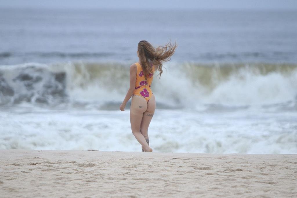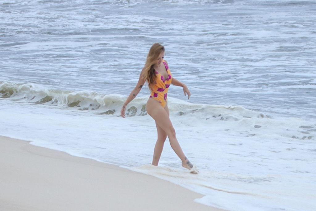 Anna Livya Padilha é flagrada por paparazzo em praia do Rio de Janeiro