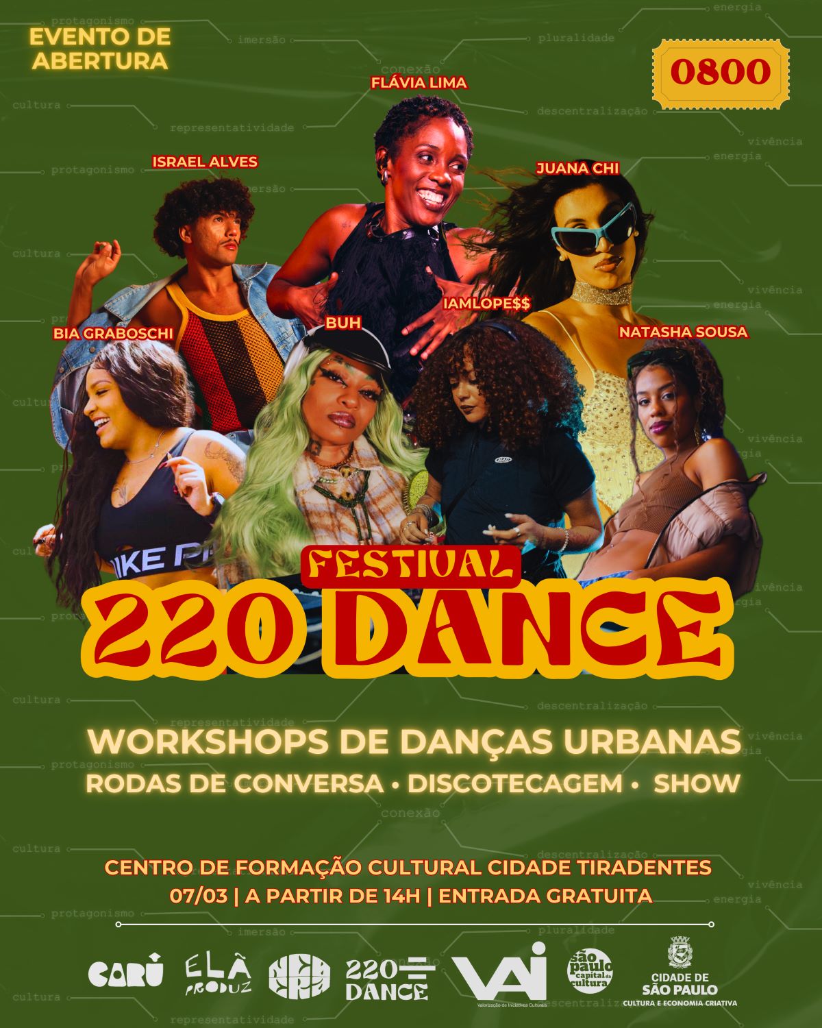 A dança urbana ganha protagonismo na zona leste de São Paulo no sábado, 7 de março, com a edição de abertura do Festival 220 Dance, que ocupa o Centro de Formação Cultural Cidade Tiradentes com uma programação gratuita voltada à formação e à profissionalização de jovens artistas da periferia.